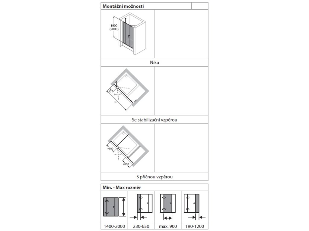 • Rozměr zástěny nominální na rozměr vaničky - šířka 90-290cm